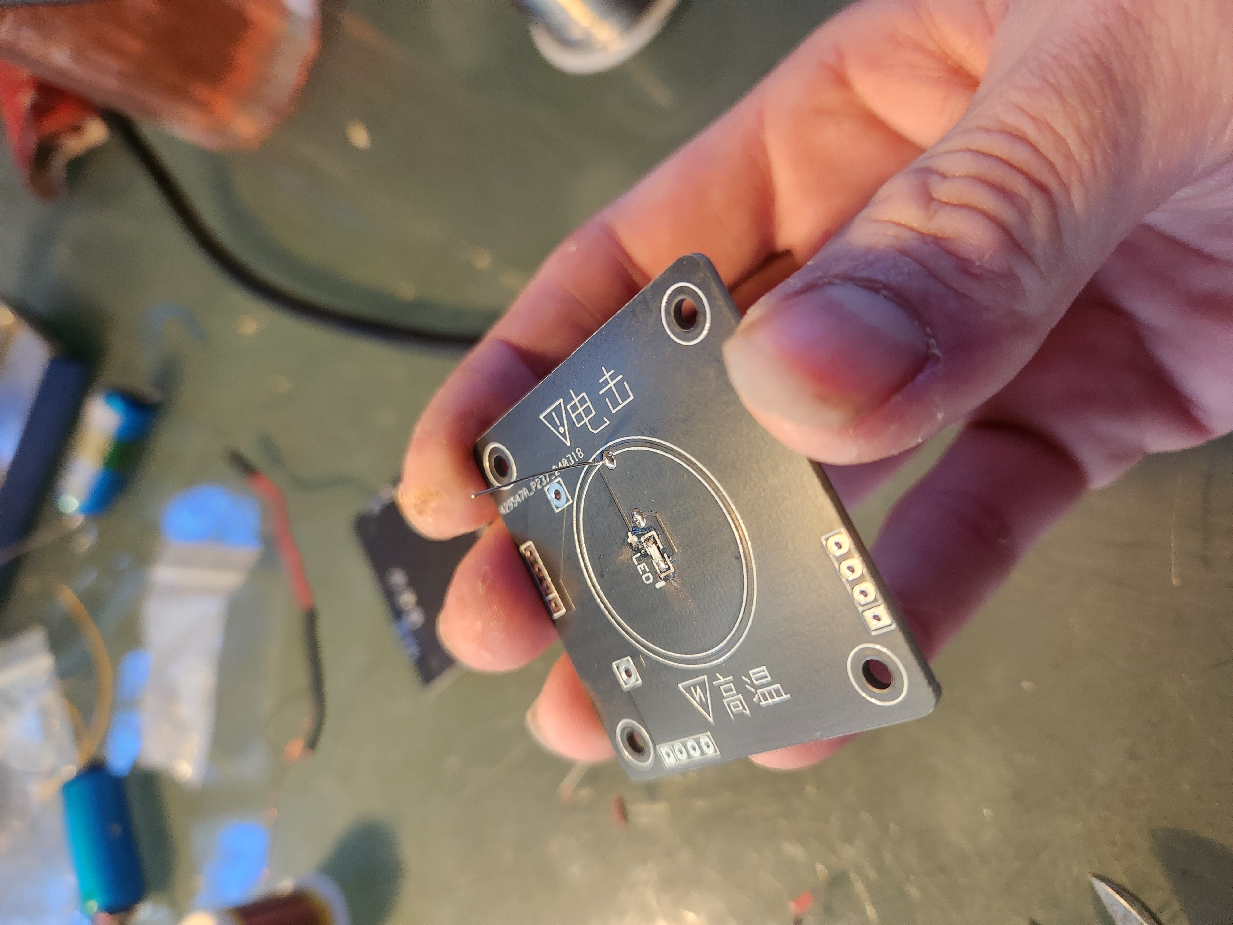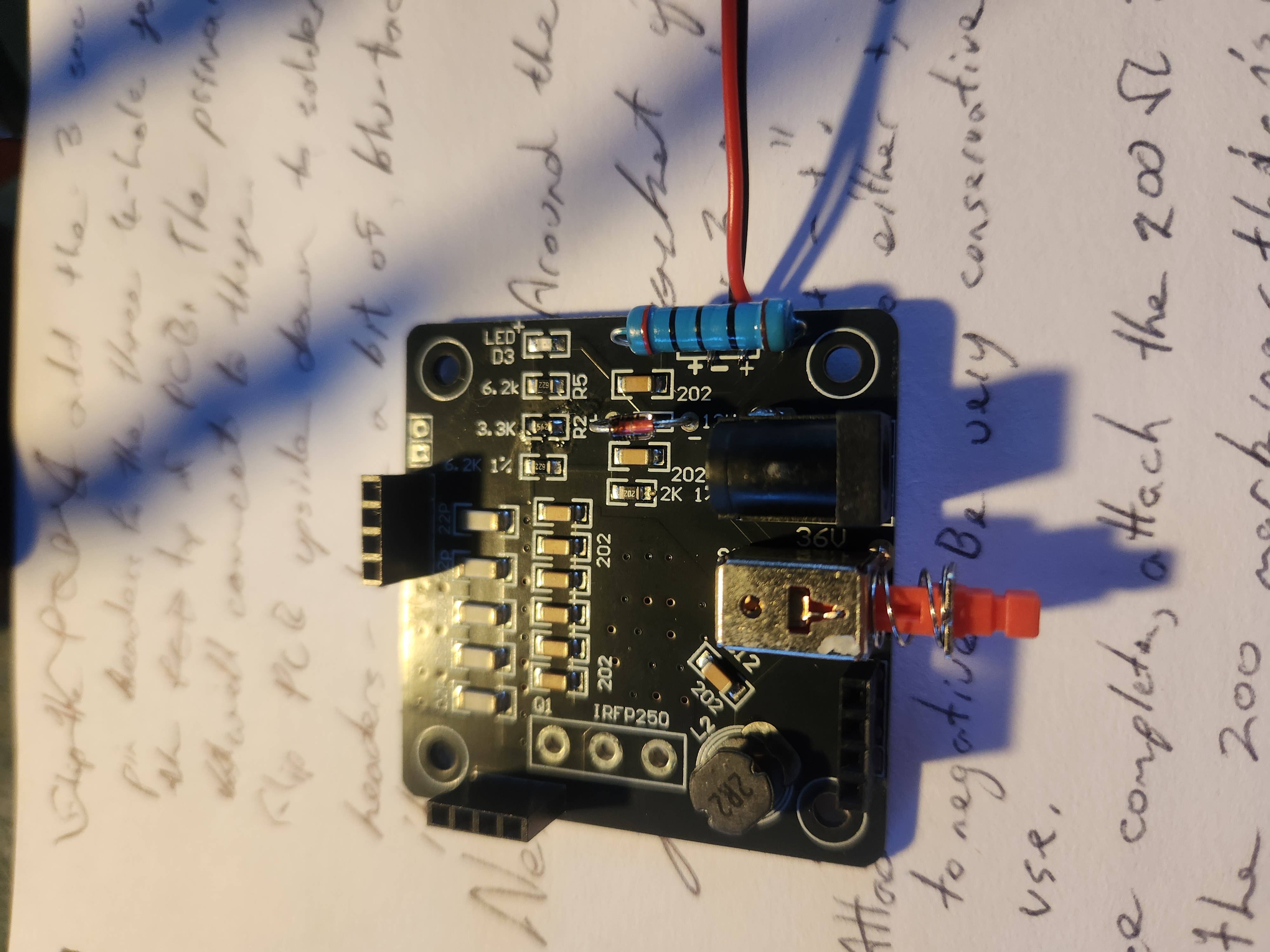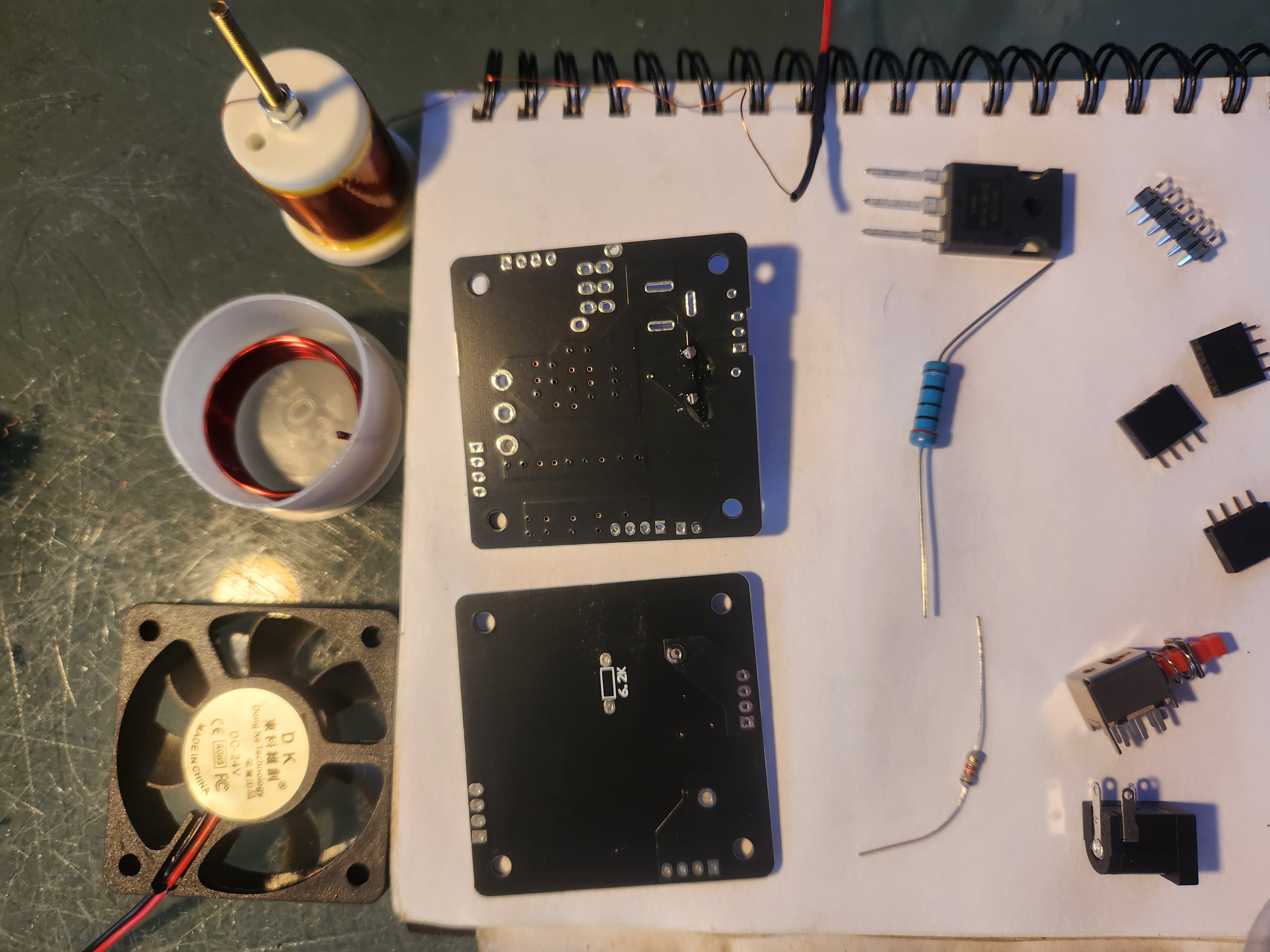Solder the 6.2kΩ resistor (the small one) to the bottom of the primary coil’s PCB.