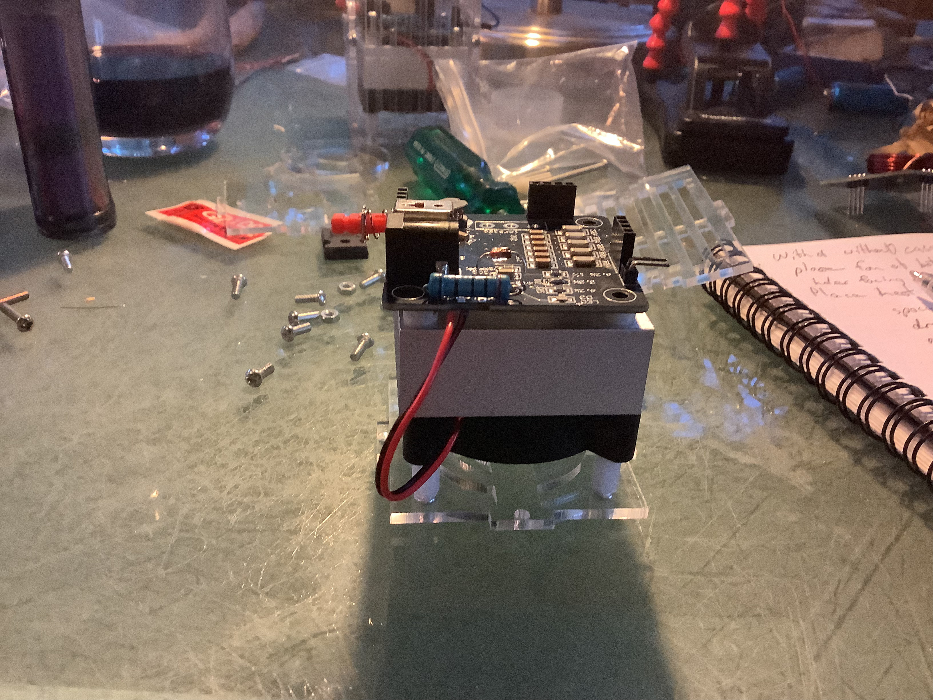 - Acrylic rectangle with a small rectangle cut out near its centre - This is for the pins that will stick out of the box and attach to the secondary coil for feedback. It will be opposite the above piece.