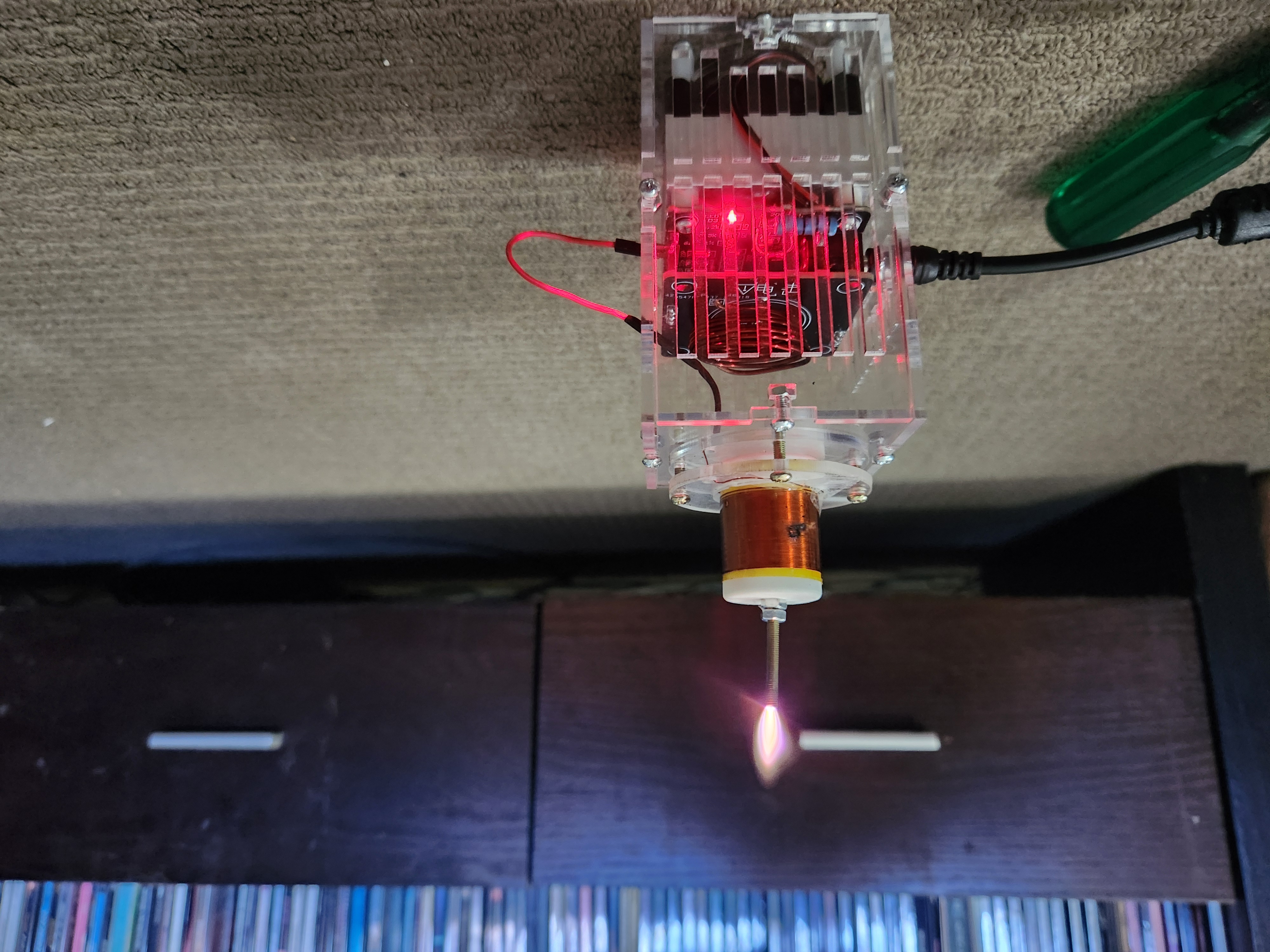A word of warning: The longer you leave it running - particularly if you give the arc a load to ground, the hotter the MOSFET will get. Pay attention to the heat blown out the sides of the heat sink’s fins and give it a chance to cool down when it begins to get hot, otherwise there’s a good chance the magic smoke will come out of the MOSFET and you’ll need to replace it.