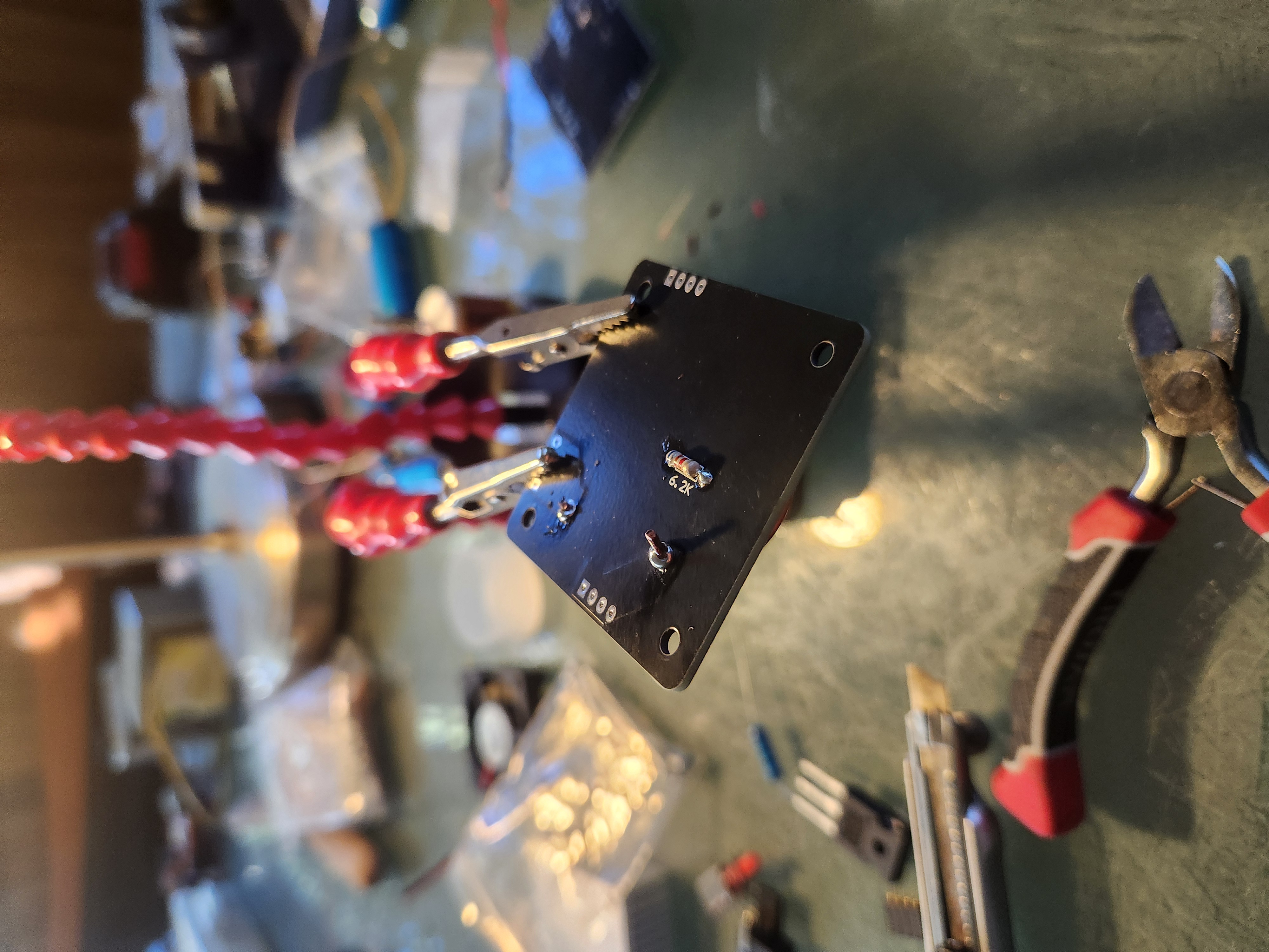 Turn the PCB over and snip the legs from the resistor.