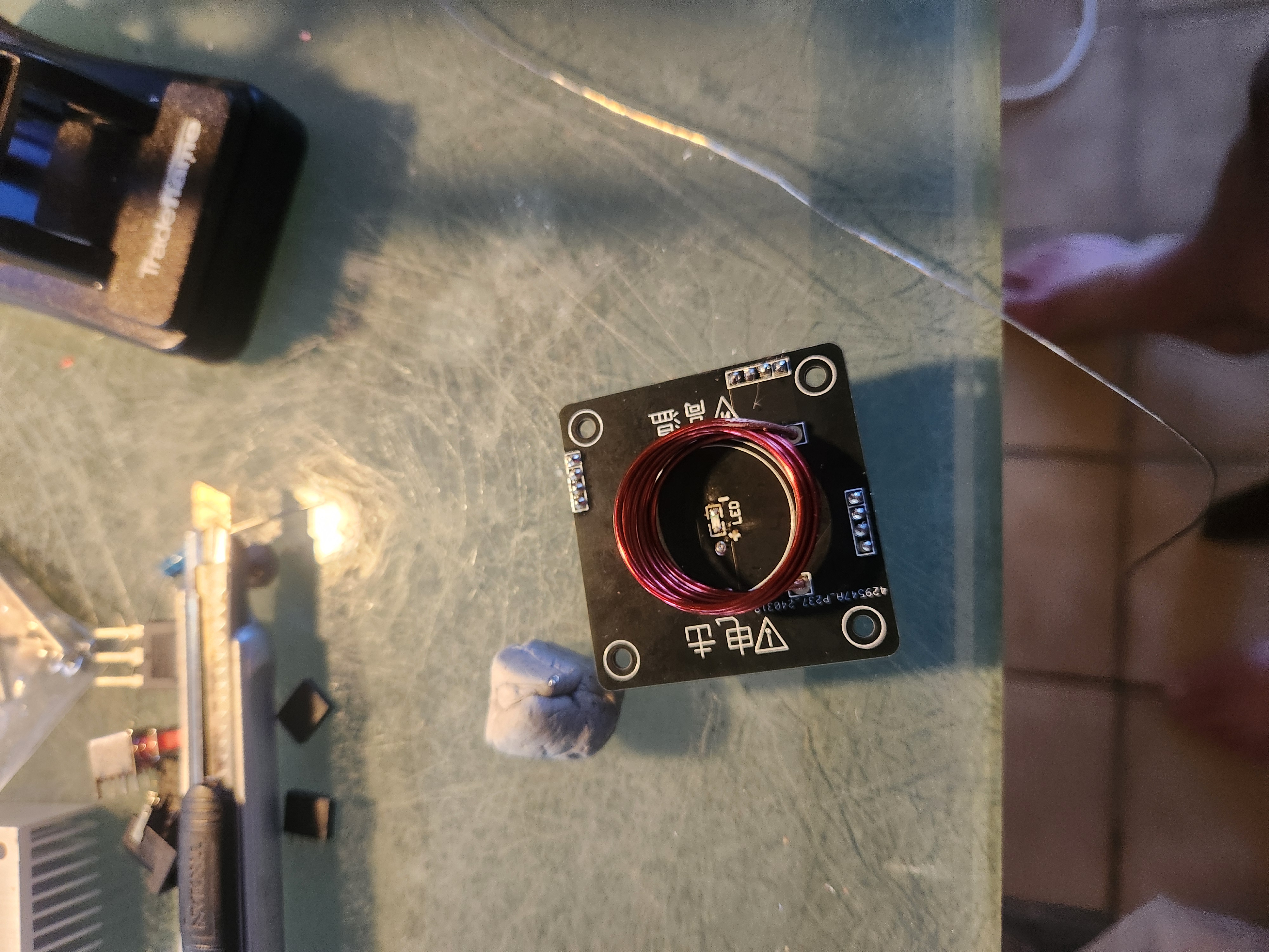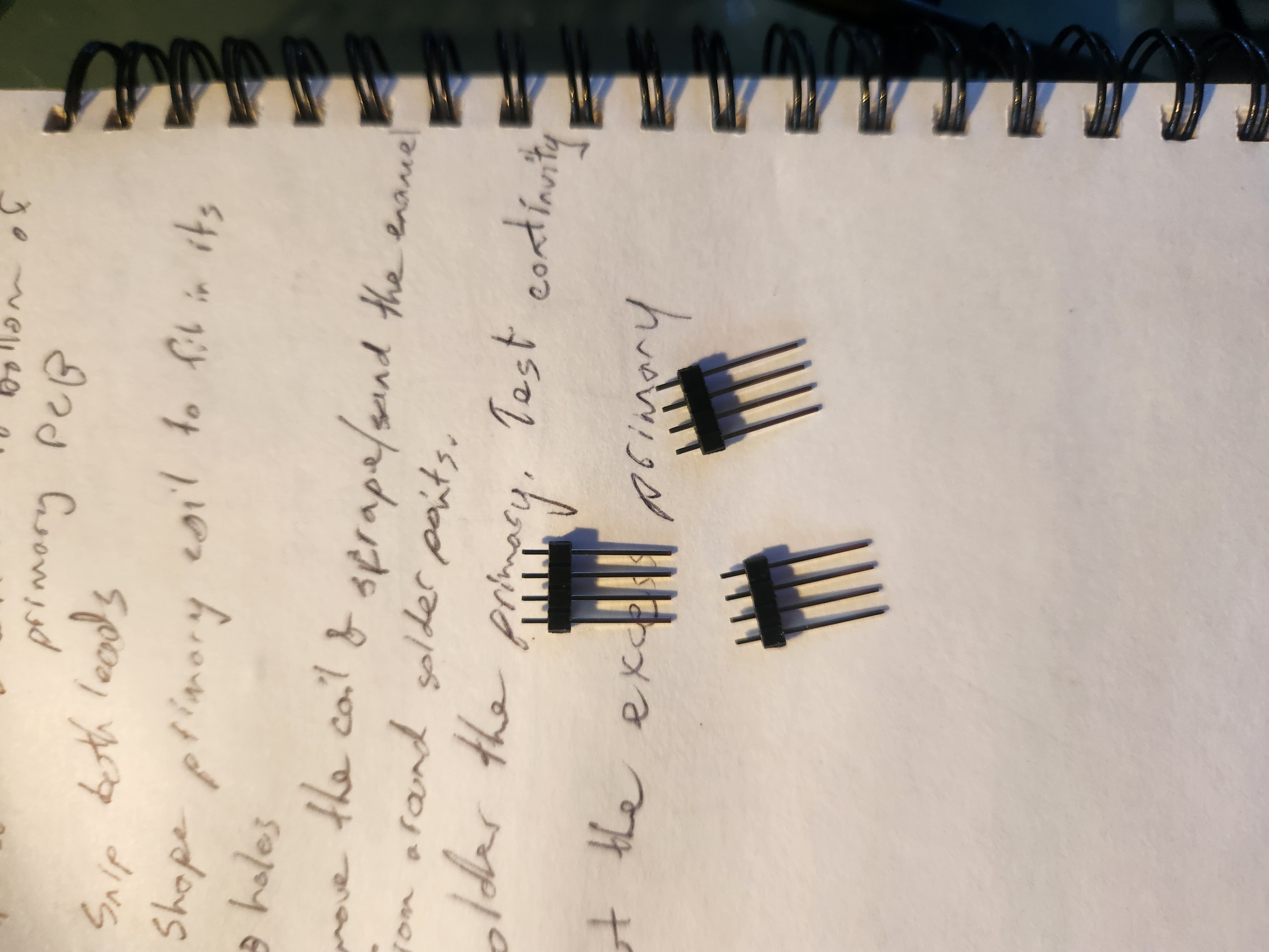 Solder the primary coil to the PCB. Using a multimeter test resistance at the solder points to confirm a good connection, then cut off any excess coil.